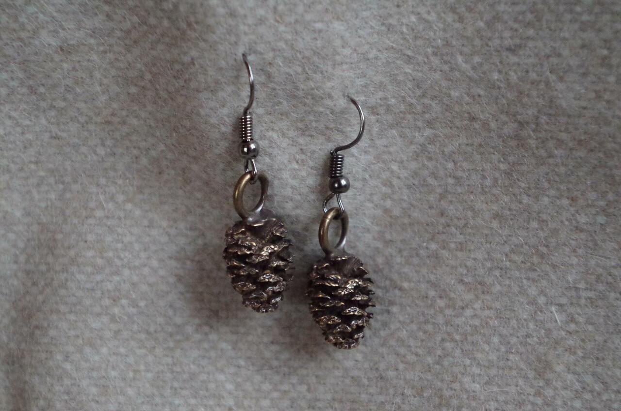 Pistsin portsu neid taskusse ja kodus võtsin neist vormi. Sündisid erinevad ehted- näiteks kõrvarõngapaarid, millest ühed on ümarad ja teist stiili paar tagumise poole pealt lapikud. Lepakäbid on ka saanud ripatsiks ja jõudnud nii ühe- kui kahekaupa sõrmuseid kaunistama.