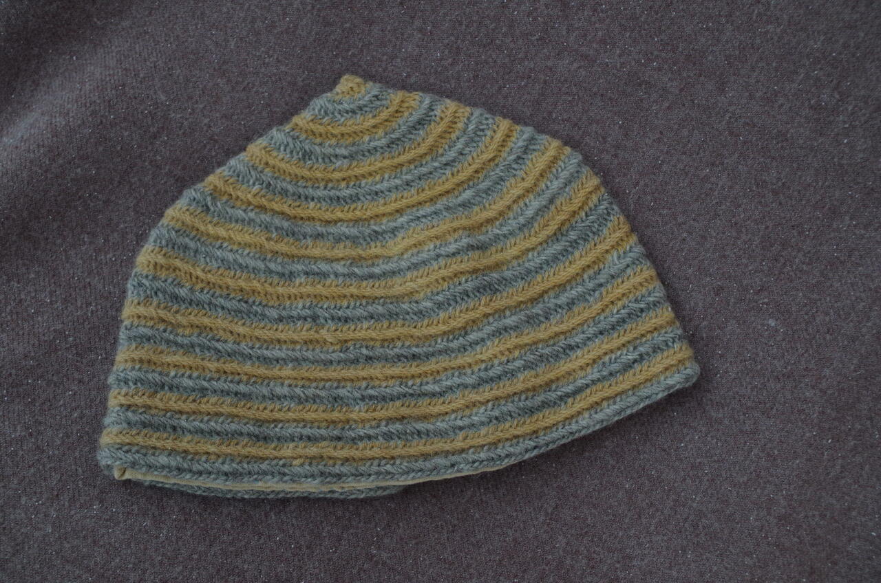 Hallide ja kollaste triipudega 100% lambavillasest lõngast nõeltehnikas valmistatud müts sobib u 59-60 cm peaümbermõõdule. Istub peas suhteliselt sügavalt ning on seest ääristatud kitsa linase voodriga, ehk ei aja pead väga sügelema.