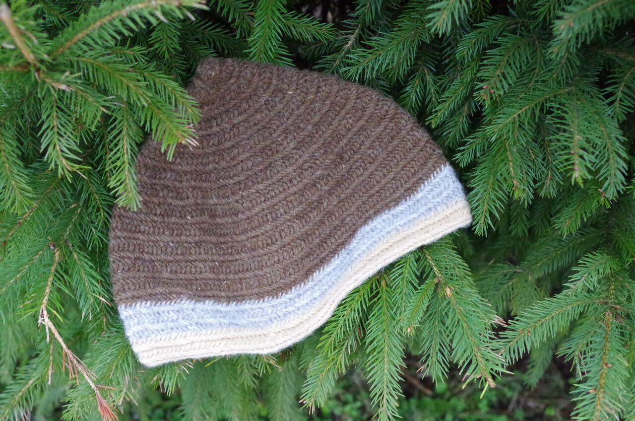 Pruun halli ja kollase äärega 100% lambavillasest lõngast nõeltehnikas valmistatud müts sobib u 58-59 cm peaümbermõõdule. Ilma linase voodrita.